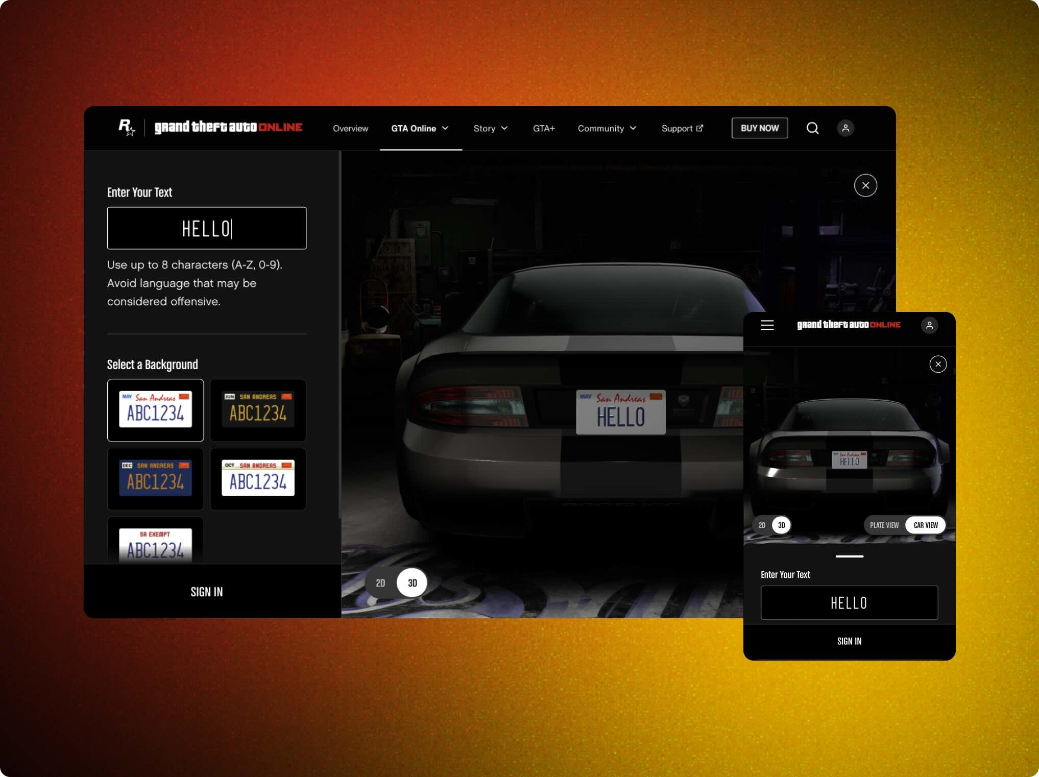 Defined interactions for the web-based application that lets player create license plates out-of-console