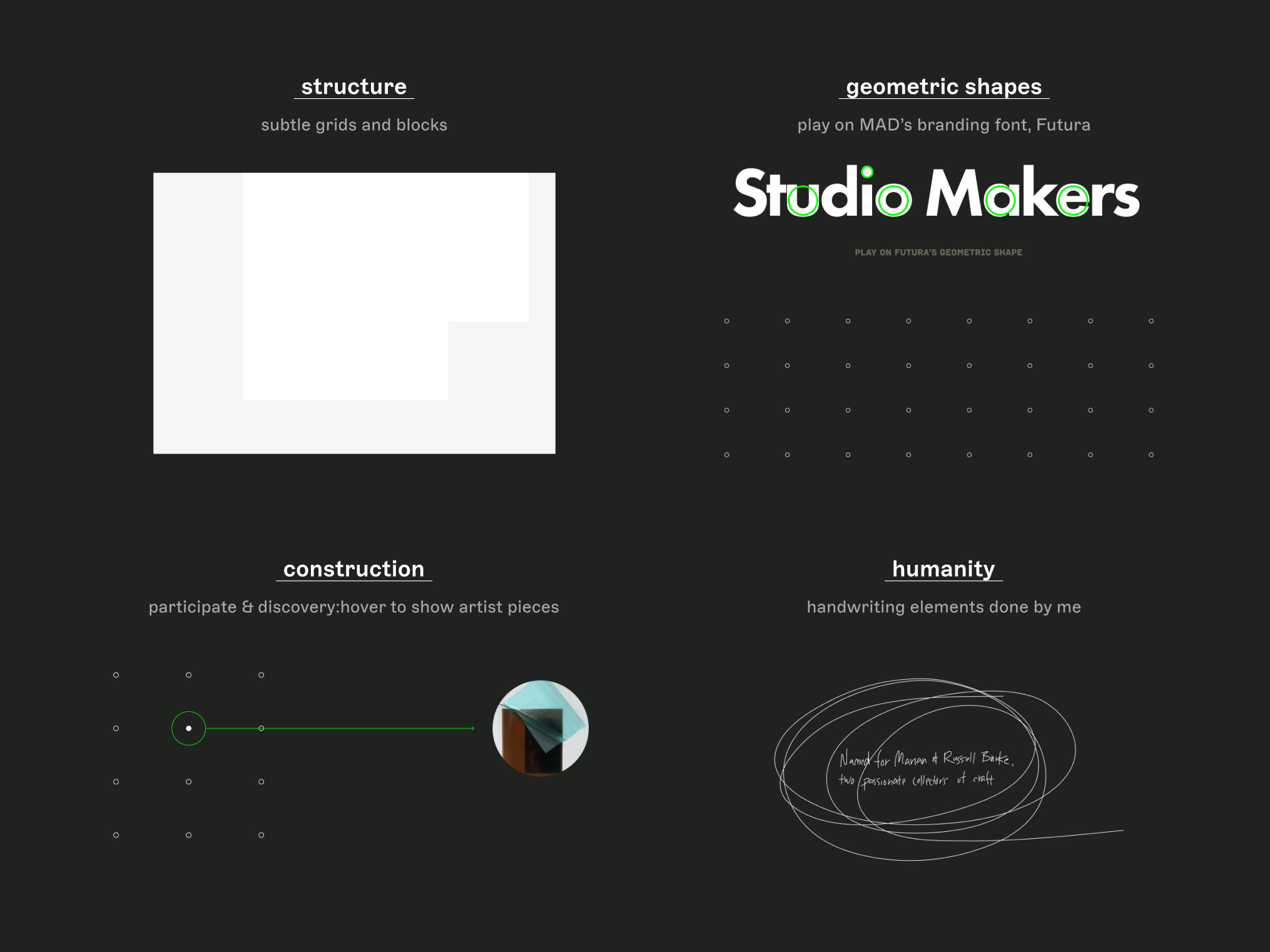I storyboarded an interaction for the hero welcome that gave context to the exhibition — as visitors hovered over dots, there is a reveal of an artist's work